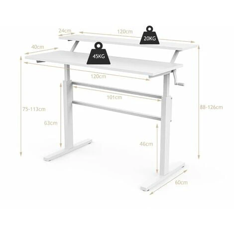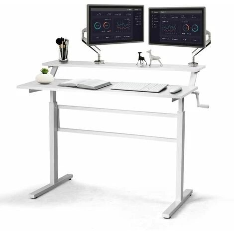 2-Tier Standing Desk Sit To Stand Workstation Ergonomic Computer Table White