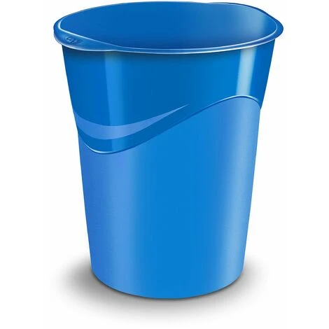 This stylish CEP waste bin features a cone shaped, curved rim with integrated handles for easy emptying and a contrasting matte and gloss finish. The bin is made from durable, 100% recyclable polypropylene and has a 14 litre capacity. This blue bin measures W305 x D290 x H334mm.