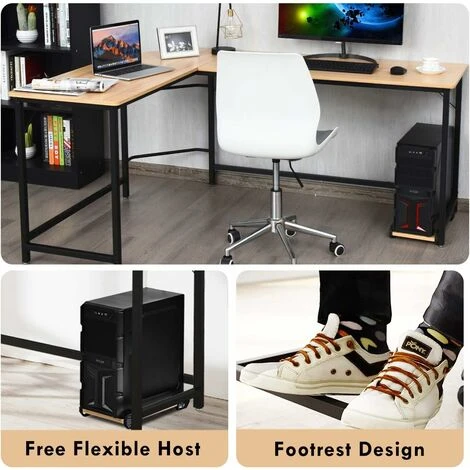 Package Includes: 1 x L-Shaped Computer Desk, 1 x CPU Stand, 1 x Instruction