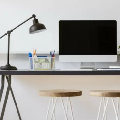 Relaxdays Desk Organizer, Stationary Tray With Pen Holder & Note Box, HWD: 10×18.5×9.5 Cm, Black