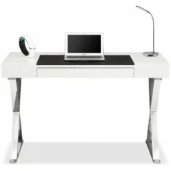 Centurion Supports ADONIS Gloss White And Chrome Ergonomic Home Office Luxury Computer Desk