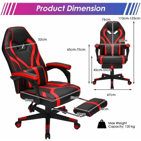 Supported by a heavy duty base with a high quality gas rod, this armchair is sturdy and stable enough to support up to 120kg. Ergonomic design perfectly conforms to the curve of the body to achieve optimal comfort. You will sit comfortably and feel relaxed with high backrest, USB massage lumbar pillow, retractable footrest and thick padded cushion. The smooth PVC surface is easy to clean while bringing you a skin-friendly touch. Besides, the seat height and backrest can be easily adjusted to meet your ideal position. This racing chair can not only improve your gaming experiences, but also serve as a comfortable computer chair for your daily work or study.