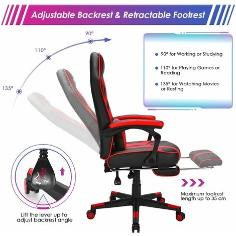 Adjustable 90 – 135 degree backrest for gaming, reading, working or resting