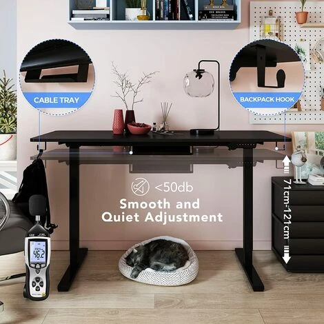 ADJUSTABLE HEIGHTâMotor lift frame offers smoother height adjustments, from 71 to 121 (not counting 1.6cm thick tabletop), at a speed of 2.5cm/second and with a low noise level (less than 50 dB)