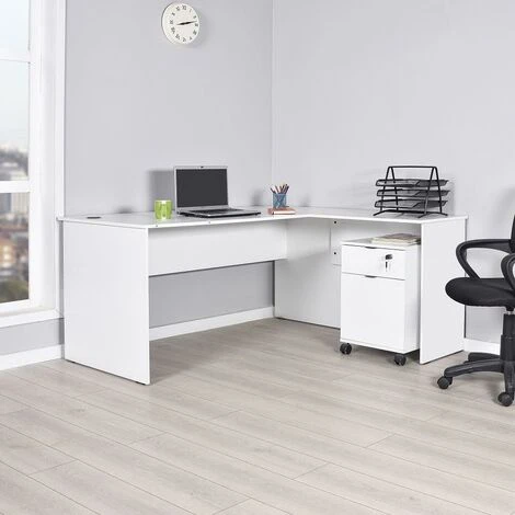 Finished in a durable , scratch resistant matt white, this large L-shaped desk is ideal for the busy home office.