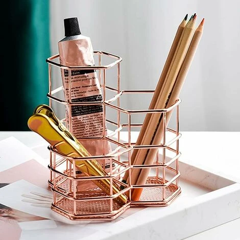 Pen and pencil holder in rose gold can hold various small items, keep your desk clean and organized.
