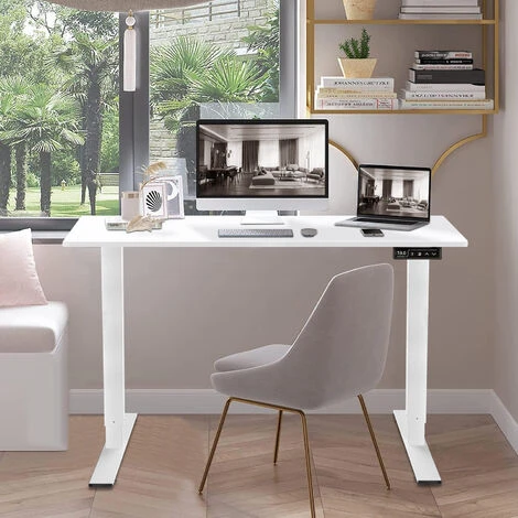 [Rugged and Stable Structure] The Electric Desk is supported by a sturdy metal frame, and the wide T-Shape design is one of the most stable supports. With 4 non-slip screw feet under the table legs, the table maintains good stability even when used at the highest height. The table top is covered with smooth, strong, waterproof laminate. This eco-friendly design makes it stronger than other desks and gives you a great office environment.Maximum weight capacity: 70kg.