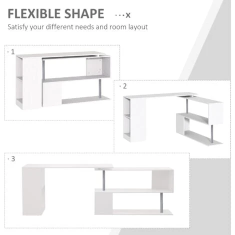 The HOMCOM L-shaped corner desk features an original 360-degree rotating design that can be adjusted to your needs and contains plenty of storage space. The modern look adds a touch of elegance to your office or home and is crafted from high-grade materials. Have a stylish working station, storage unit, and display case with this unique offering from HOMCOM.