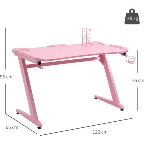 • Dimensions: 96H x 122L x 66Wcm. Tabletop to floor: 76cm. Distance between legs: 115cm. Cup holder: 6H x Φ11cm. Gamepad holder: 20H x 8.5W x 12Dcm