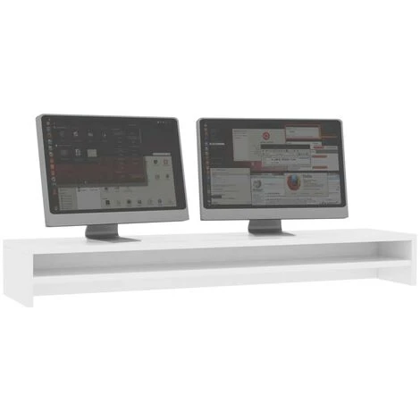 You can now raise your monitors to the perfect height with our monitor stand. The sleek design makes it a practical and decorative addition to your working area. The stand levels up monitors, so as to help reduce eye, neck and back strain. Its extra wide design holds up to 2 monitors and the integrated shelf allows you to free up more space on your desk and keep your keyboard, pens and other stationery items well organised and within reach. Made of premium board, this screen riser is built to last.