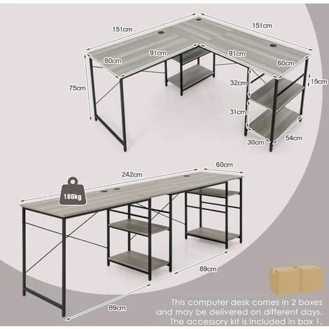 2 ways to set up: both corner desk and 2 person long desk