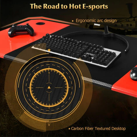 Large Computer Gaming Desk Carbon Fiber Surface Z-Shaped Professional Game Table