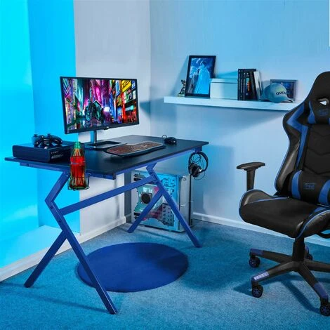 Neo Blue Ergonomic Gaming Desk With Headphone Hook