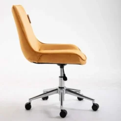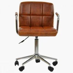 Desk Chair Modern Swivel Task Chair Without Wheels For Bedroom Home Office, Leather, Brown