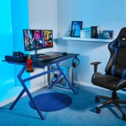 HOMCOM LED Light Gaming Desk Computer Steel Frame Cup Holder Headphone Hook