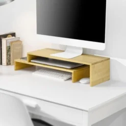 SoBuy Monitor Stand Riser 2 Drawers Computer Screen Riser Desk Organizer Black,BBF02-SCH