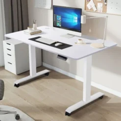 Motorised Standing Desk Frame (71 To 121cm Tall) – Computer Desk, Standing Desk, PC Desk – White