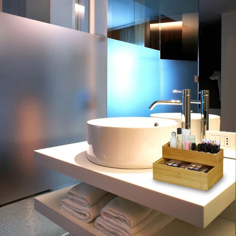 In daily life, small items accumulate quickly in your office or overall household. Thanks to this organiser box makes sure you can always maintain an overview of your kitchen tools, office utensils or cosmetic items. You may choose between various sizes: Thanks to the smart edges, you can reliably stack the boxes. However, the bamboo bin does not only impress with its functionality, but also its natural charm for a warm ambience.