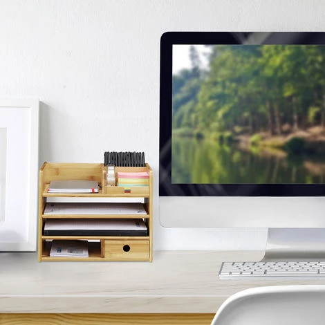 This filing system for your desk features plenty of storage space for stationery supplies, letters and A4 sheets. Two large compartments for document storage, a drawer and multiple smaller compartments feature lots of storage space to keep your stationery supplies neatly stored, so you can concentrate on your work. The stand is however not only great office storage, but is also great for school supplies and more.
