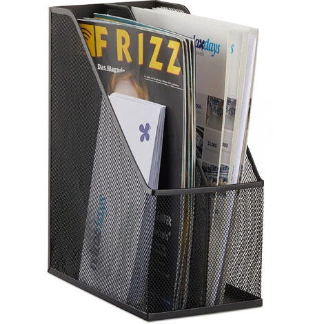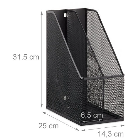 You can use this nifty file holder with 2 compartments for magazines, documents, sheets and notes and keep them orderly. The standing filing compartment is made of metal and makes for an ideal addition to your desk at home or at the office. A functional and straightforward design makes the metal mesh visually impressive.