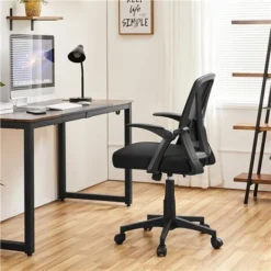 Yaheetech Mesh Office Chair With Folding Padded Armrests,High Back Ergonomic Desk Chair, Black