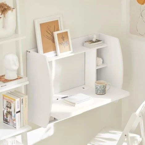 - Great design wall mounted desk with storage shelves and drawers provides working space and extra plenty of storage space.
