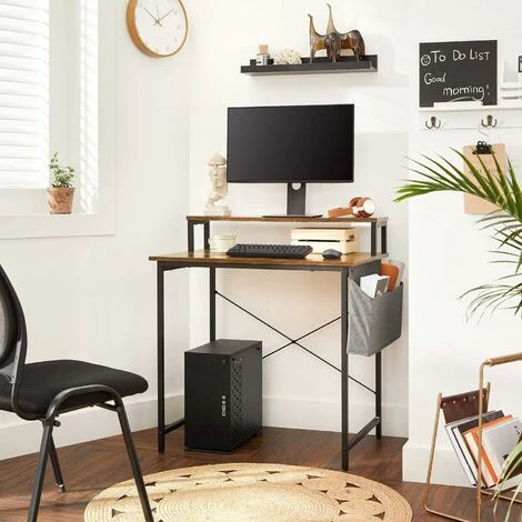 Monitor Stand or Storage Shelf?Raise dual monitors to your eye level for multitasking, or display some plants and trinkets on the top shelf. | Extra X-BarsX-bars are added to the back of this computer desk to add stability and ensure no wobbling. | Keep It BalancedThis writing desk comes with adjustable feet to compensate for the unevenness on the floor. |