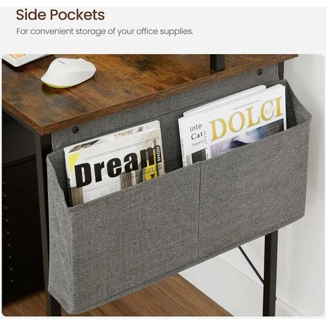 3.Left or Right? You have the final say. Simply install the fabric bag on the left or right of this computer desk as you like, then it’s ready to house your notepad, phone, sticky notes, and USB drive, keeping all your work necessities at hand