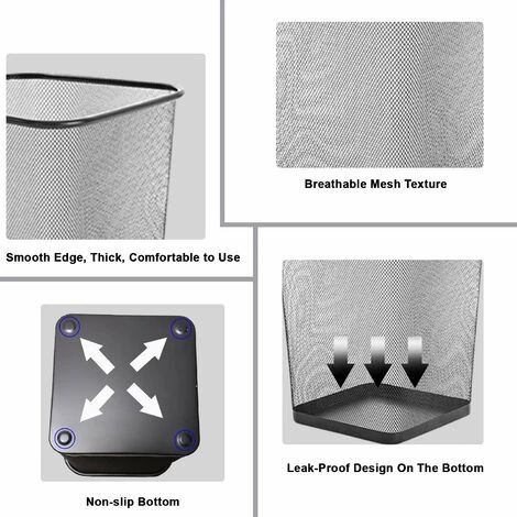 The black trash can is made of durable steel mesh. Scratch resistant, reinforced with a solid metal base with hard edges along the bottom and top edge. The mesh design lets you see exactly what’s inside. inside the office bin
