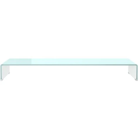 This glass shelf can be used as a TV stand or riser for your desktop monitor, television, laptop and other multimedia devices. With the glass shelf raising the monitor, you will have a better view of the screen while sitting comfortably, which helps to reduce the strain and discomfort on your neck or back. The space underneath can accommodate your DVD player, game console, streaming device, receivers, and media carriers.