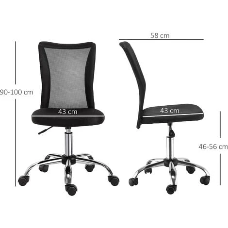 the mesh back is breathable. The slightly curved back offers support as you lean back. A steel base for weighted balance, with five wheels to move around easily. No arms means this swivel chair fits underneath your desk at any height. A compact design is ideal for small places.