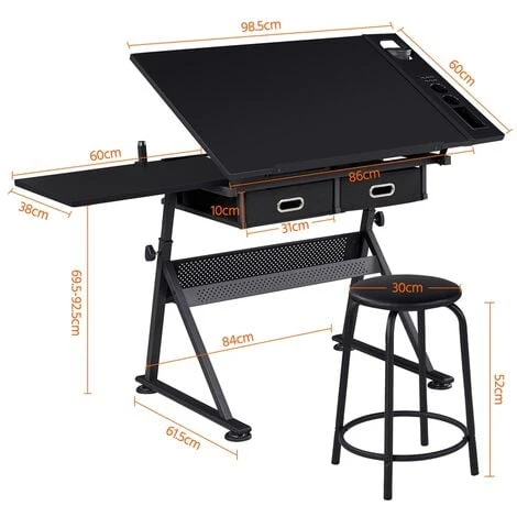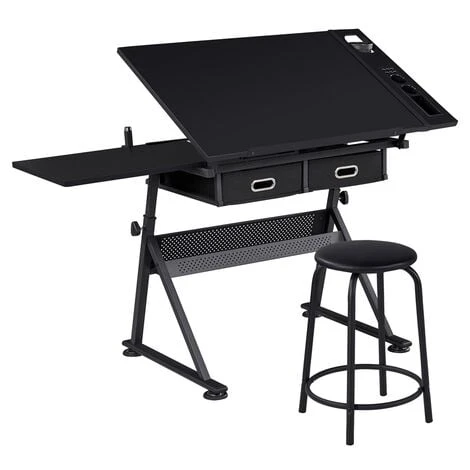 Looking for a quality yet inexpensive drawing table with super functions? You won’t go wrong with this reliable drafting table set! It has all the table functionality you need for professional art designs or regular laptop work, including height/angle/pencil ledge adjustment and all-in-one storage options. Plus the package has a comfortably matching stool so that you could get ready for work right after the easy assembly. By the way, the set piece is certified by EPA, so don’t worry about the harmful formaldehyde emissions.