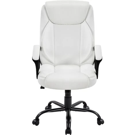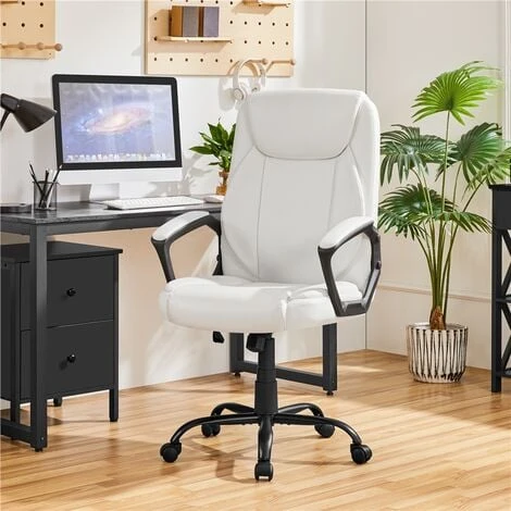 This appealing faux leather computer chair checks all the boxes. The combination of smooth faux leather texture and matte black base will give your workspace a more upscale appearance. A durable steady frame makes sure our customers enjoy comforts and relaxing sitting. The seat height is adjustable according to personal preference. The foam-padded seat and high back provide optimal body support and relieve muscle tension caused by long hours of working, meeting, or studying. It has a rocking feature as well. Mute castors allow 360° smooth mobility without scratching the floor. A versatile addition to study rooms, offices, home offices, reception areas and libraries.