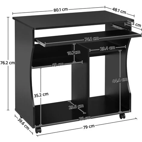 Keyboard Tray: 74.1 x 23.5 cm (L X W)